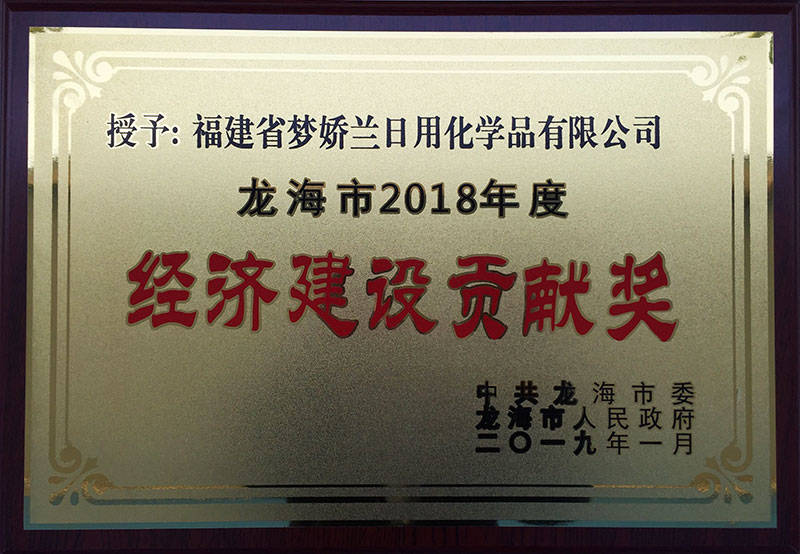 "夢嬌蘭公司"榮獲【中共龍海市委 龍海市人民政府】授予的“龍海市2018年度經濟建設貢獻獎”殊榮