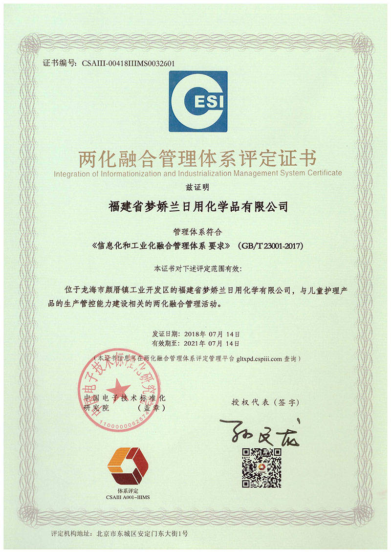 "夢嬌蘭公司"首次通過兩化融合管理體系評定(CSAIII-00418IIIMS0032601)