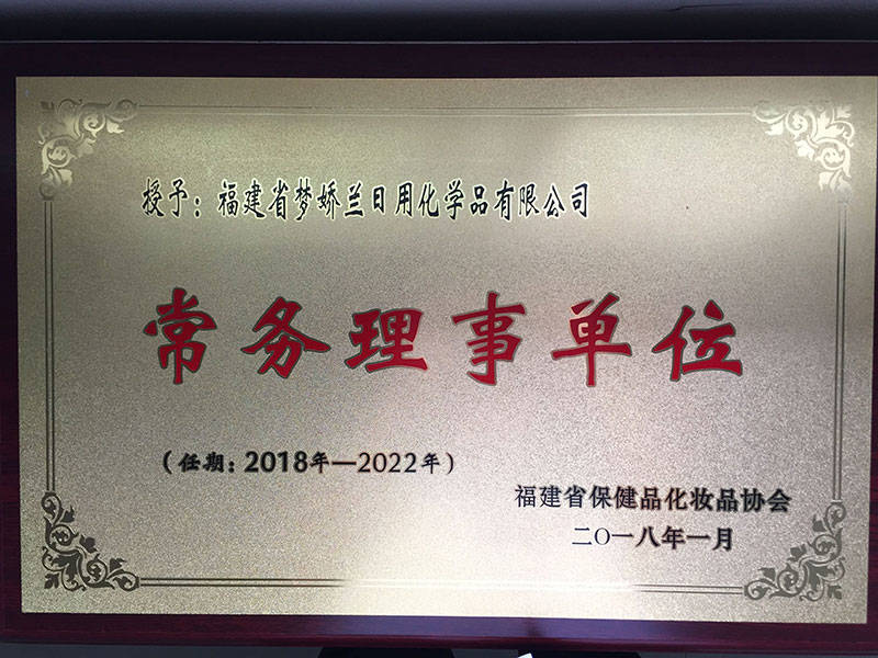 "夢嬌蘭公司"榮獲【福建省保健品化妝品協會】授予的“福建省保健品化妝品協會常務理事單位”殊榮