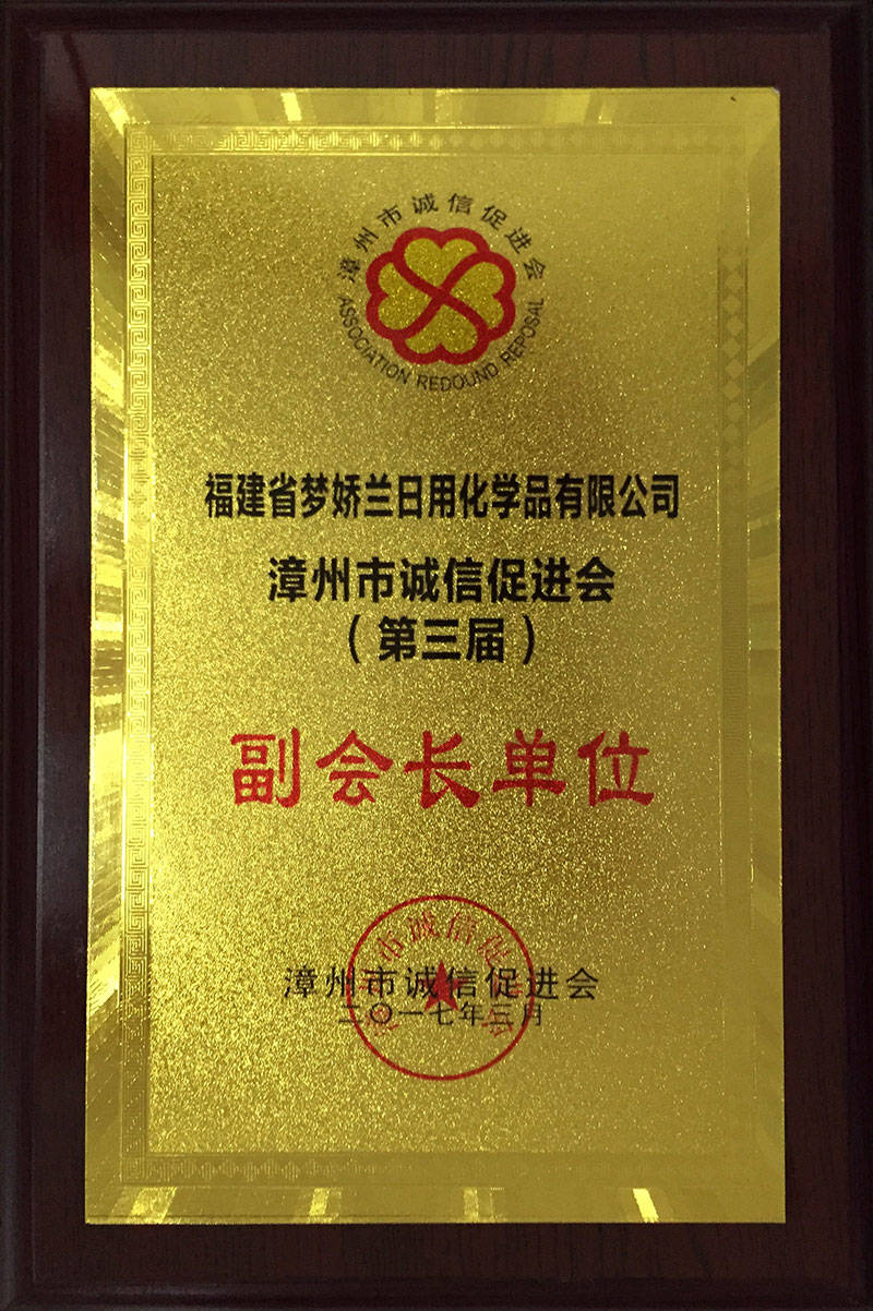 "夢嬌蘭公司"榮獲【漳州市誠信促進會】授予的“漳州市誠信促進會(第三屆)副會長單位”殊榮