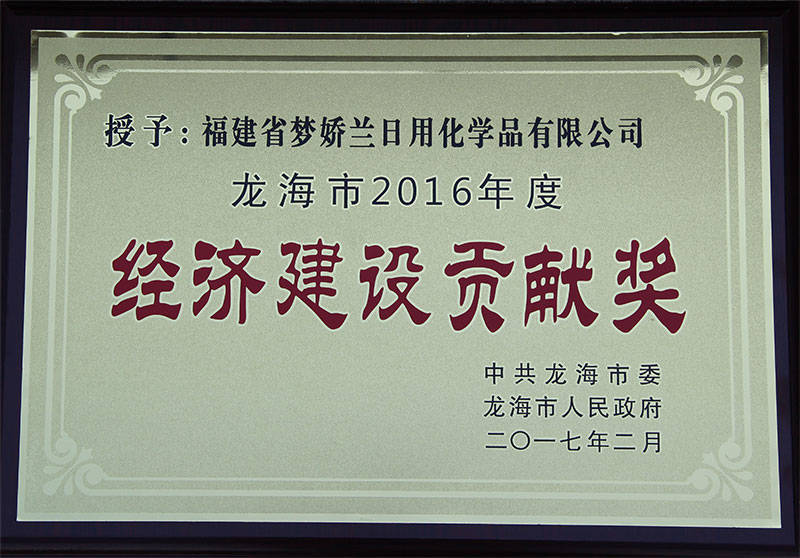 "夢嬌蘭公司"榮獲【中共龍海市委、龍海市人民政府】授予的“龍海市2016年度經濟建設貢獻獎”殊榮