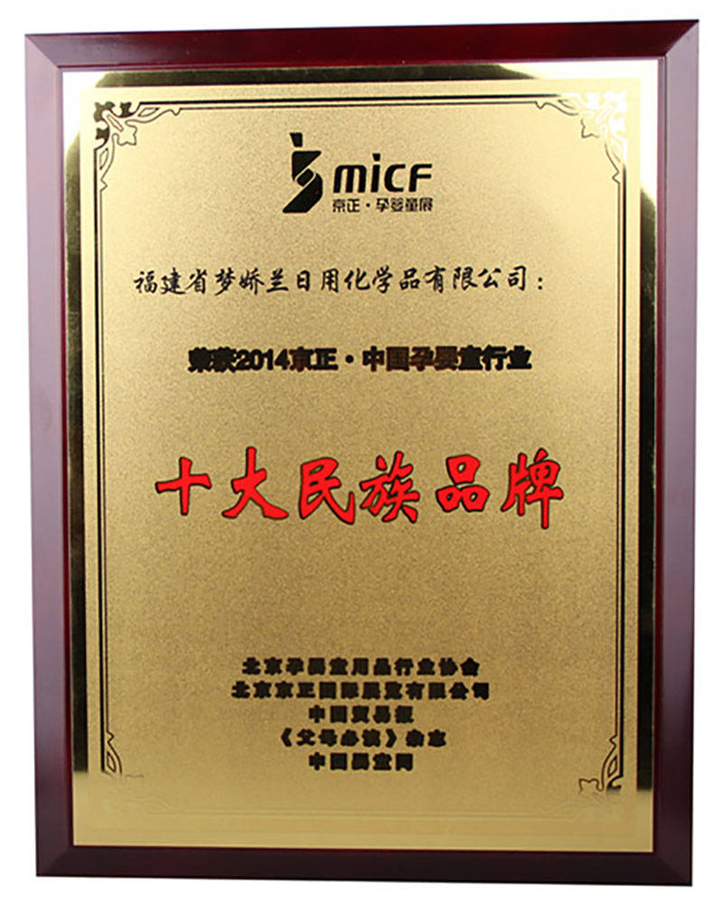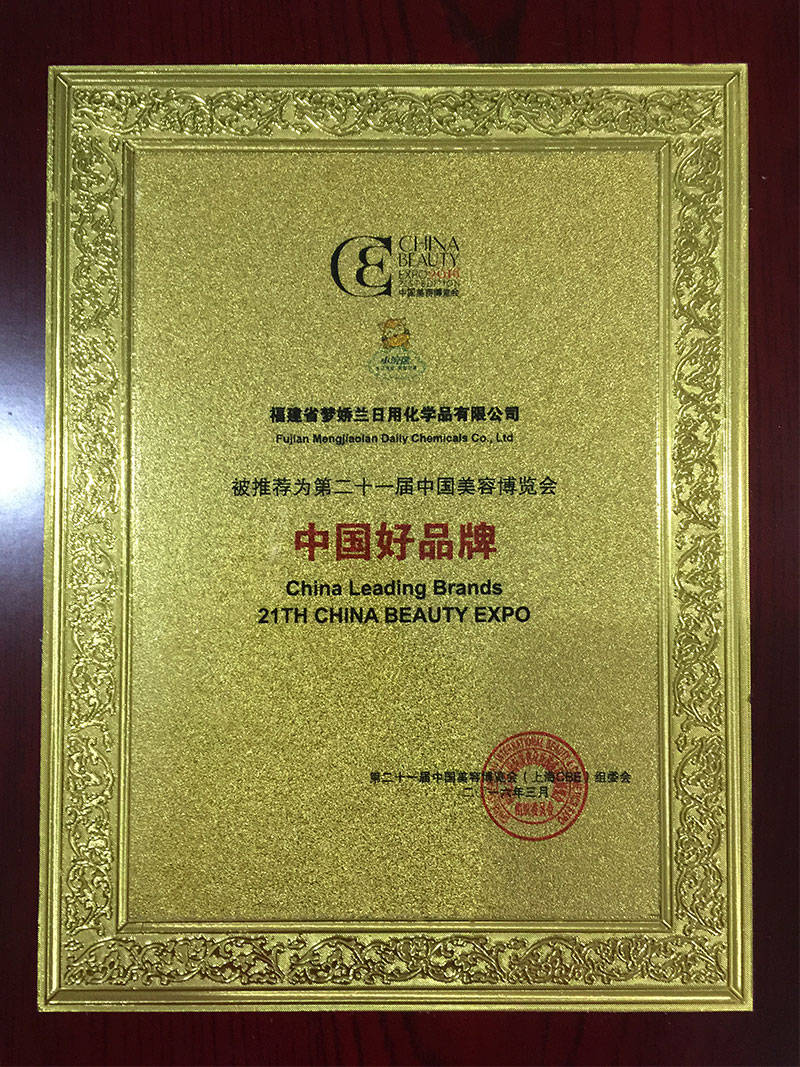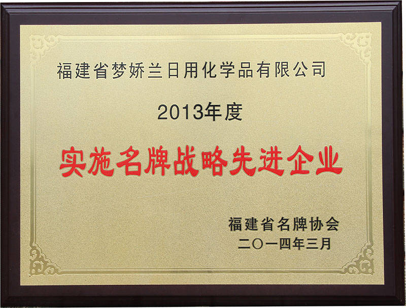 "夢嬌蘭公司"榮獲【福建省名牌協會】授予的“2013年度實施品牌戰略先進企業”殊