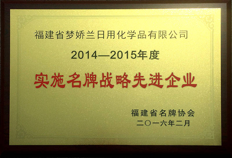 "夢嬌蘭公司"榮獲【福建省名牌協會】授予的“2014-2015年度實施名牌戰略先進企業”殊榮