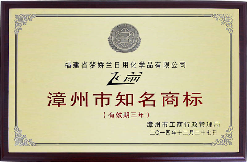 "小浣熊"榮獲【漳州市工商行政管理局】授予的“漳州市知名商標”殊榮