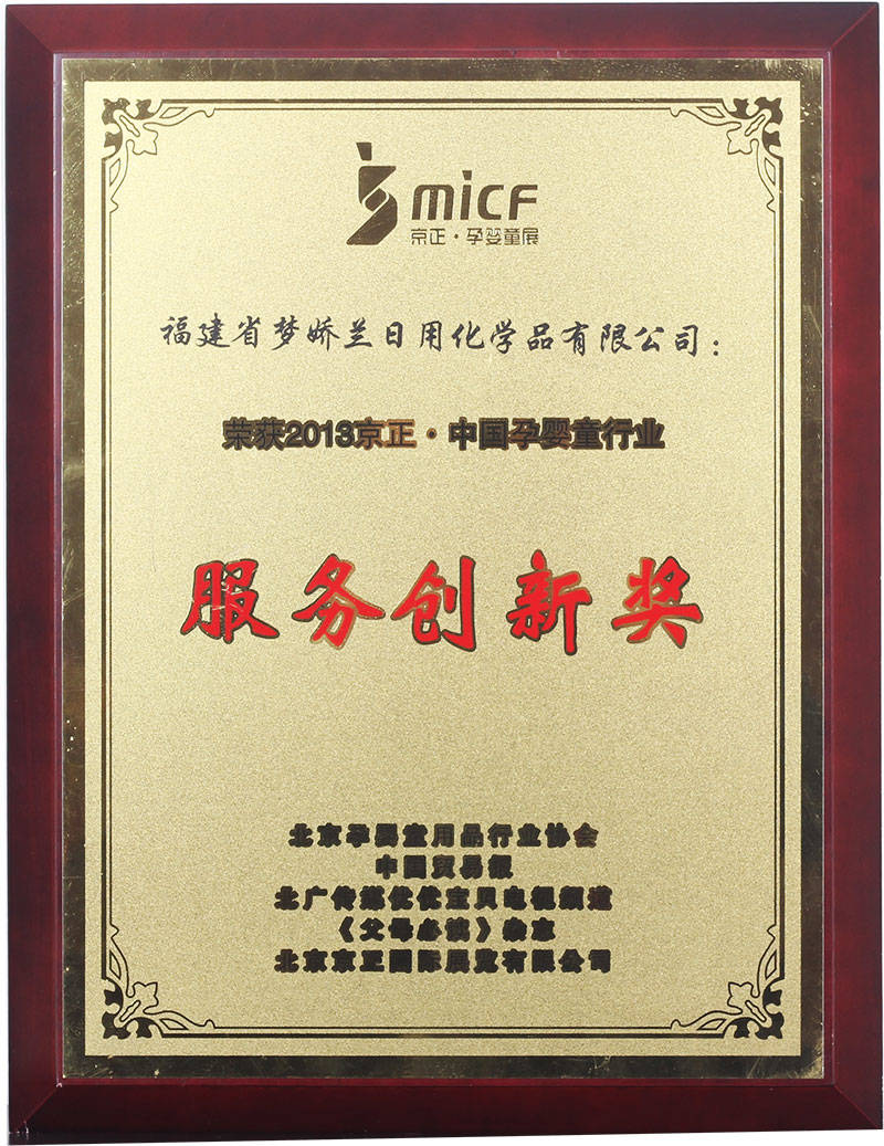 "小浣熊"榮獲【北京孕嬰童用品行業協會】授予的“2013京正.中國孕嬰童行業 服務創新獎”殊榮
