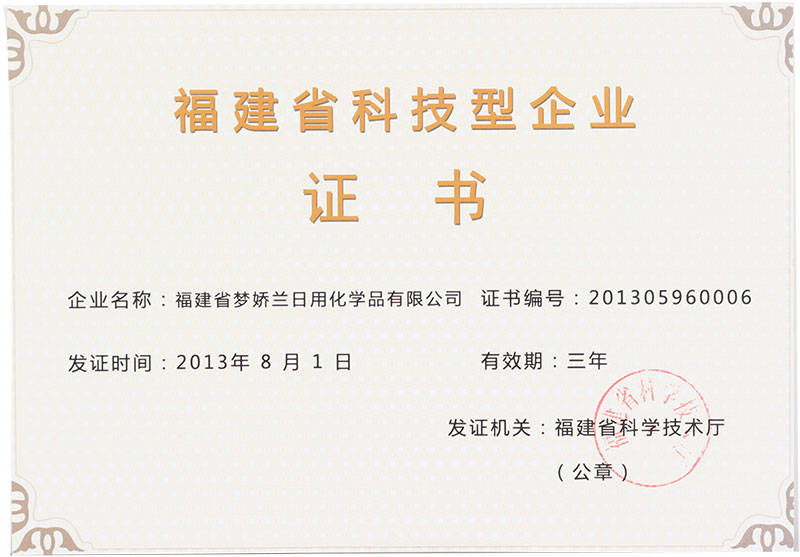 "夢嬌蘭公司"榮獲【福建省科學技術廳】授予的“福建省科技型企業”殊榮