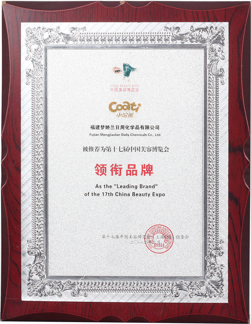 “小浣熊”榮獲【第十七屆中國美容博覽會(上海BCE)組委會】授予的“第十七屆中國美容博覽會領銜品牌”殊榮
