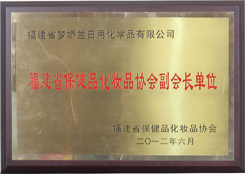 "夢嬌蘭公司"榮獲【福建省保健品化妝品協會】授予的“福建省保健品化妝品協會副會長單位”殊榮