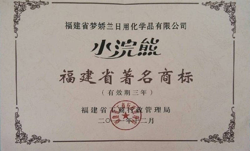 "小浣熊"榮獲【福建省工商行政管理局】授予的“福建省著名商標 ”殊榮