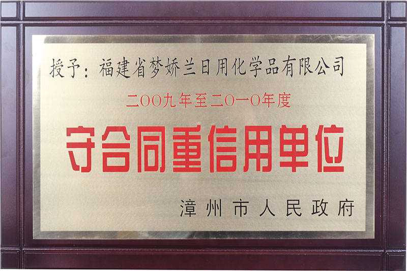 "夢嬌蘭公司"榮獲【漳州市人民政府】授予的“2009-2010年度 守合同重信用單位”殊榮