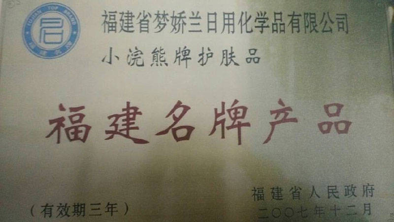 “小浣熊護膚品”榮獲【福建省人民政府】授予的“福建名牌產品”殊榮