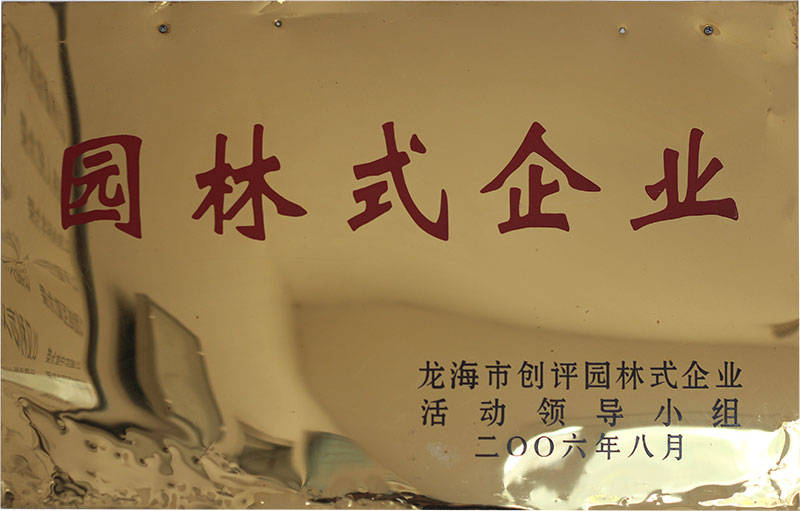"夢嬌蘭公司"榮獲【龍海市創評園林式企業活動領導小組】授予的“園林式企業”殊榮