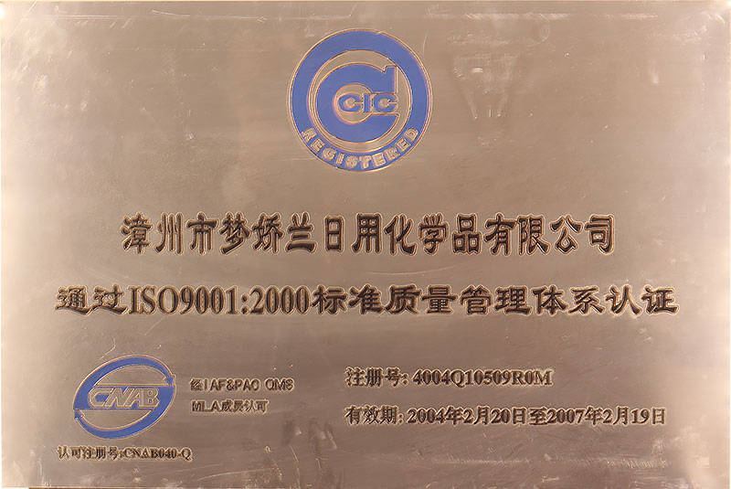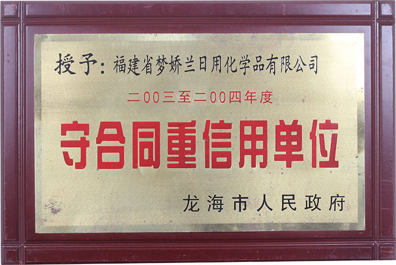 "夢嬌蘭公司"榮獲【龍海市人民政府】授予的“2003-2004年度守合同重信用單位”殊榮