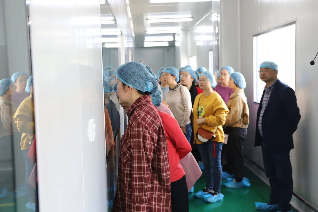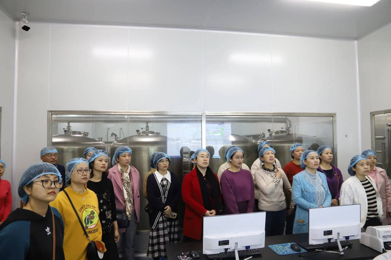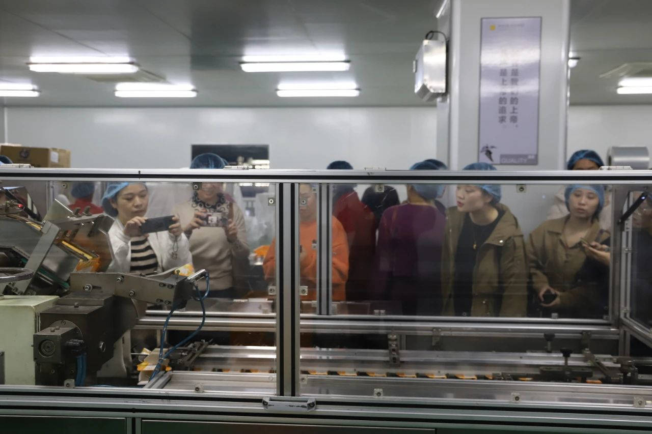 來賓一行參觀牙膏車間和洗沐車間的自動化生產線