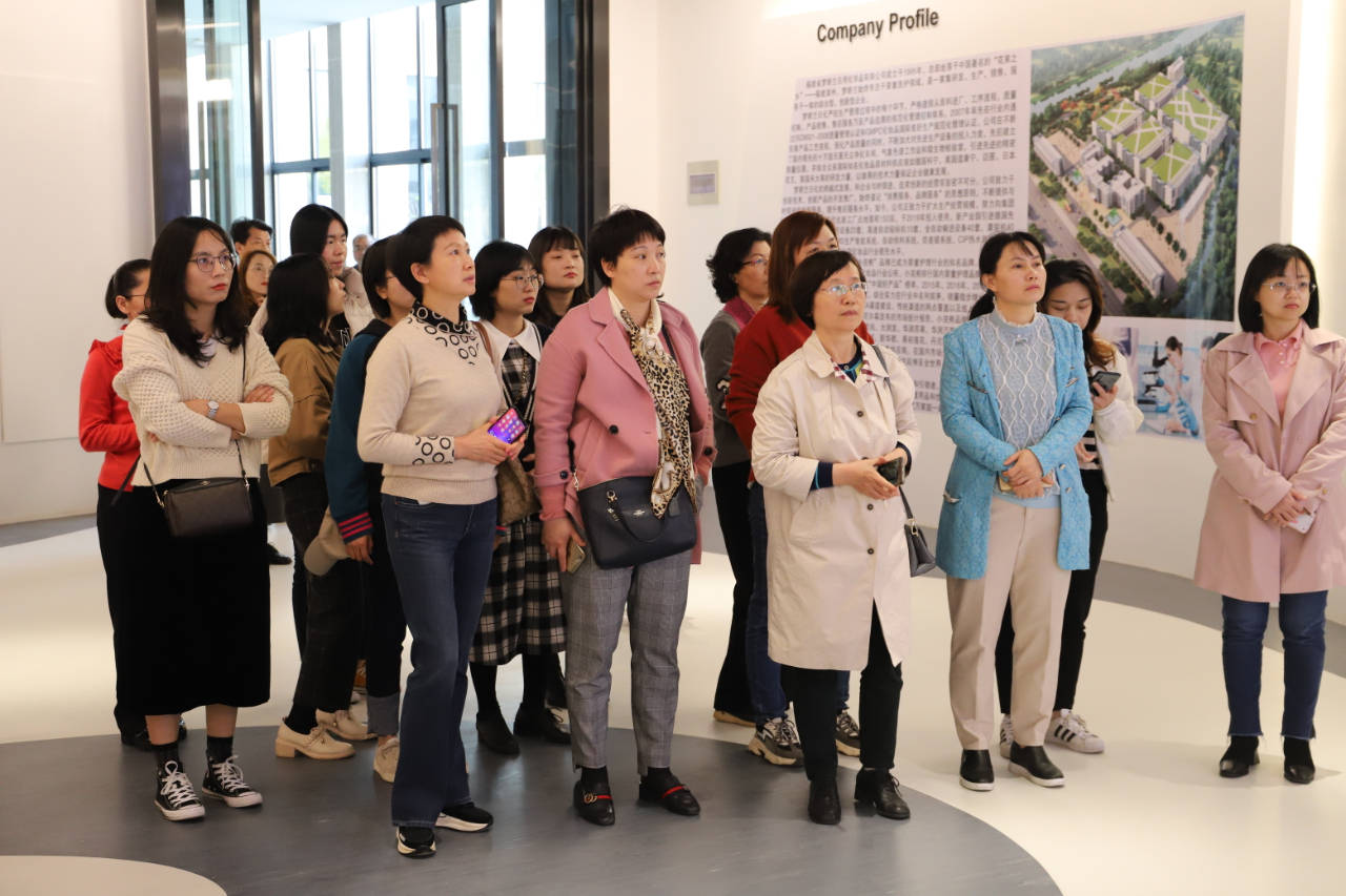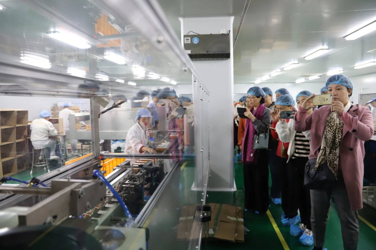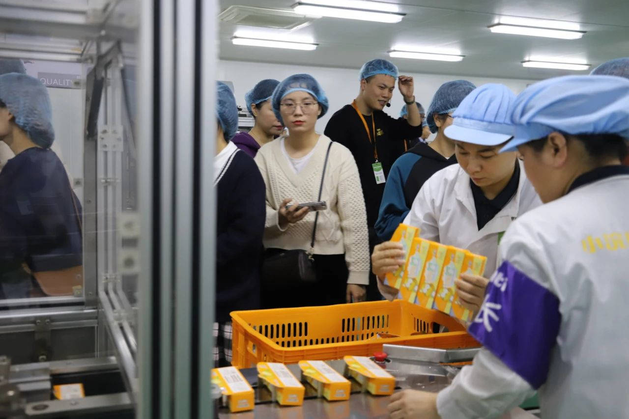 來賓一行參觀牙膏車間和洗沐車間的自動化生產線