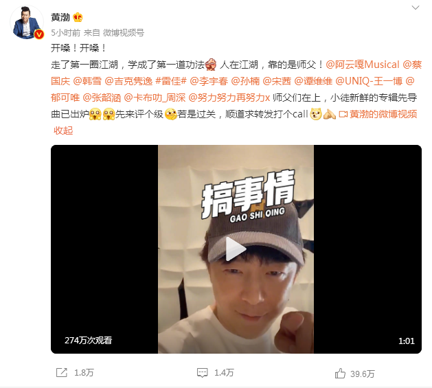 8月23日,小浣熊嬰童洗護品牌代言人、演員黃渤在微博發消息稱,個人首張專輯《這些年為你攢下的歌》正式上線,并發布了兩首先導曲《收我為徒》、《無聊》。據悉,黃渤本人親自參與了兩首歌的制作,更聯合金牌制作人劉佳,打造出這兩首充滿驚喜的作品。