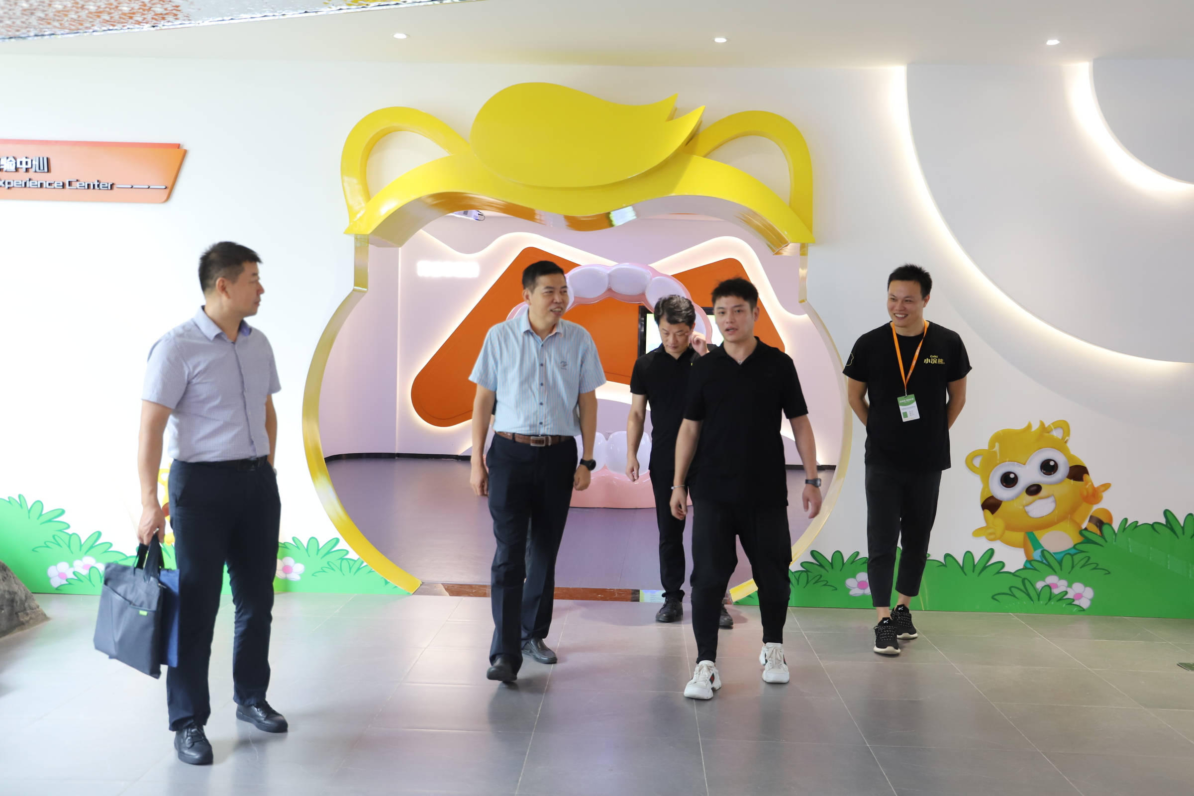 在何總的陪同下,漳州市工信局副局長許開明一行實地參觀了小浣熊企業文化館、小浣熊體驗館、小浣熊產品展廳,深入了解了小浣熊產業園的規劃建設以及企業工業旅游項目的開展情況。